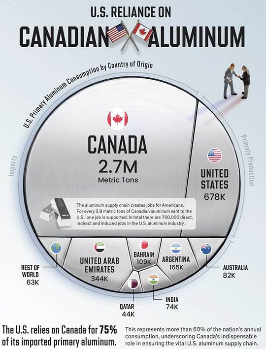 In other words, the mission and purpose of the protective tariff is to protect the home industries and domestic workforce including a decent wage, its mission is not to simply generate “revenue” through a form of taxation on imported goods. To make this clear, let us return to the example of sugar during this time. The United States was producing sugar, but only 1/11 of its domestic needs. So, as McKinley makes the point, it does not make sense to tariff sugar since they did not produce enough to meet the domestic demand. Thus, it is not enough that you are producing the product, but that you can meet the domestic demand that effects how a protective tariff should function. In other words, some industries will be able to increase production to meet the demand and thus protectionism greatly benefits such industries. However, some industries are unable or are many years behind meeting the domestic demand, thus a tariff on the competing foreign product will not help to boost domestic production but will effectively just work as a revenue tax, which increases the burden on the consumer with no advantage to domestic production. From this we can see that 10/11 of the sugar demand within the United States during McKinley’s time is considered non-competing. Thus, foreign imports of sugar should be allowed in without any tariff in sufficient quantities to meet this non-competing demand. This is adjusted accordingly to how the domestic market progresses. In the case of wool, Americans could meet this domestic demand in full and thus it made sense to put a high tariff on foreign imports of wool. Applying this McKinley wisdom today let us look at the American aluminum industry. The United States during the time of Trump’s announcement of 25% tariff on pretty much everything included that of aluminum. However, according to the US Chamber of Commerce (published December 17, 2025):