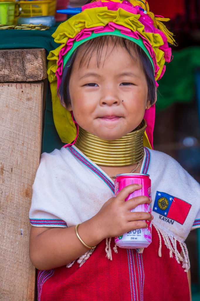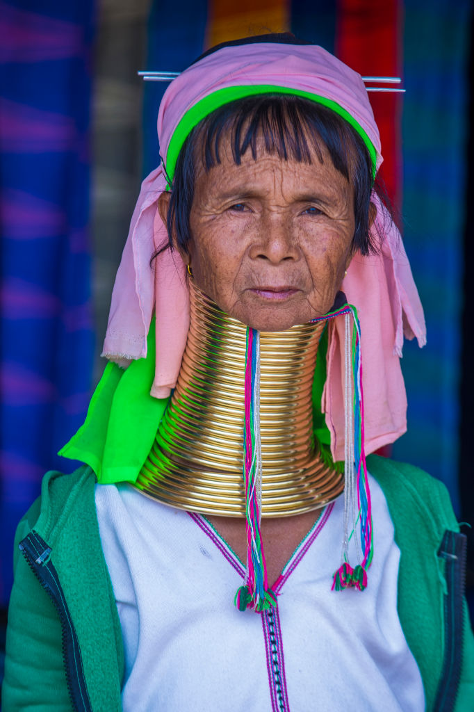 Girls from the age of five start wearing the brass coils in the Kayan Lahwi culture and as they get older the number of coils increases.